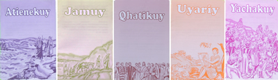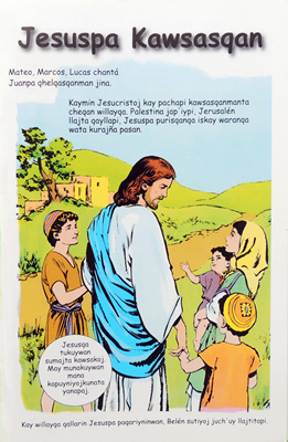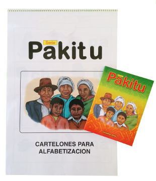 Una cartilla para aprender a leer en quechua. El cartelón es un ayuda visual para usar en un grupo de alfabetización.